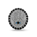 A sterling silver Hand of Fatima (Hamsa) charm, intricately designed with a border of black cubic zirconia for a stylish contrast. The charm features a captivating touch with a black and white cubic zirconia eye, adding an element of protection and symbolism to this elegant piece. This accessory combines cultural significance with modern design, making it a unique and eye-catching addition to any jewelry collection.