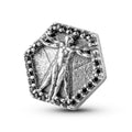 A sterling silver charm featuring the Vitruvian Man, with a sophisticated touch of a black cubic zirconia rim. This stylish piece captures the essence of Leonardo da Vinci's iconic depiction, adding a modern and elegant flair. The black cubic zirconia rim enhances the charm, creating a distinctive and eye-catching accessory for those who appreciate art and timeless symbolism.